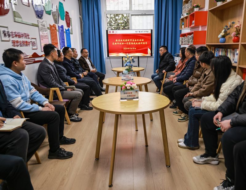 3月19日,深圳市宝安区政协党组书记、主席姚刚,以及芜湖市政协副秘书长、办公室主任陶泰山一行,在校党委常委、副校长郑健,党委宣传部副部长李红星等陪同下,来到老澳门六合彩资料 宿舍青年议事中心参观调研,与学院师生代表座谈交流。这是小小中心第5次接待市级政协、第4次接待芜湖市外领导专家,给全体师生极大鼓舞,进一步增强了做优做实学生宿舍青年议事中心的信心,更好地服务学院青年学生成长成才,为全校“三全六专”育人实践注入更多的活力、打造更多的样板品牌。