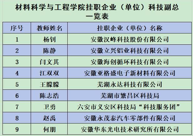 学院积极探索校企融合的个性化人才培养模式,先后与安徽哈特三维科技有限公司、安徽海螺集团联合开设增材制造“哈特班”、“海创冠名班”,与芜湖市繁昌区共建“增材制造产业学院”。9名教师挂职企业科技副总(表格),将企业的实际需求和行业的前沿技术融入到教学内容中。企业的技术专家参与课程教学,为学生传授实际工作中的经验和技能;学生到企业进行实习和实践项目操作,了解企业的生产流程和生产工艺,提高了学生的就业竞争力,实现了学校与企业的无缝对接,为社会培养更多符合市场需求的创新实践人才。学院构建的递进式实践教学体系,通过有组织地引导学生参与横向项目、深入企业一线、奋战竞赛赛场,实现了知识向能力的有效转化。学院联合行业协会、企业成功举办“首届智能增材制造技术及应用交流会”和“第二届智能增材制造技术及应用交流会暨产教融合创新论坛”,进一步加强了与行业的合作,高质量赋能产教融合。