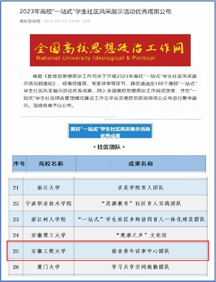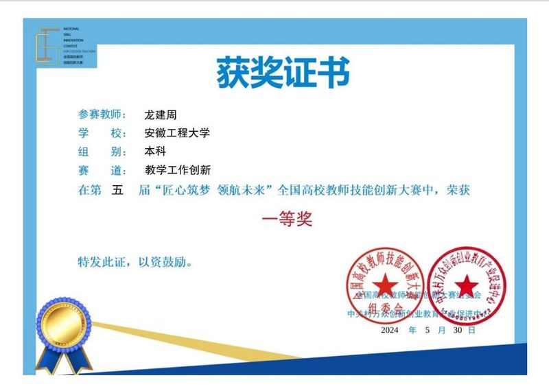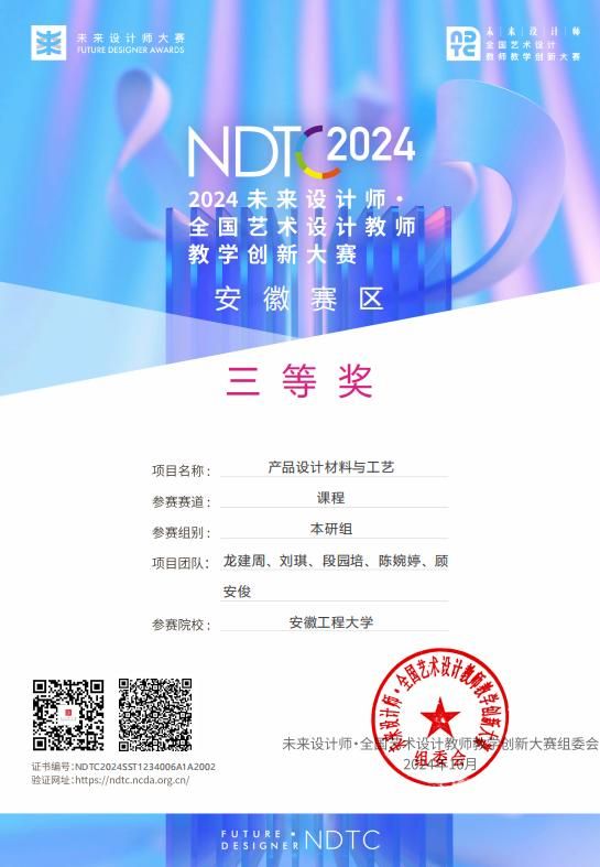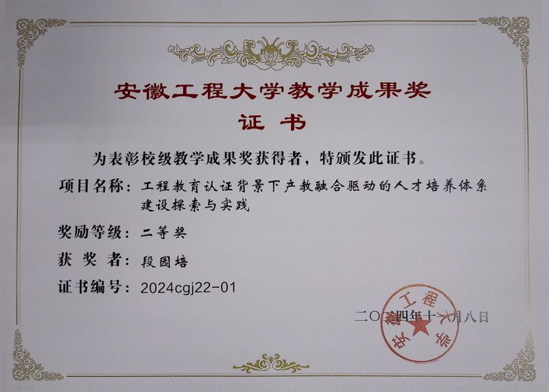 材料成型及控制工程专业先后获批安徽省一流(品牌)专业和国家级一流专业建设点,并通过工程教育专业认证;材料科学与工程专业入选省级卓越工程师教育计划“六卓越一拔尖”建设专业。学院教师获第五届全国高校教师教学创新大赛安徽省赛区二等奖1项,第五届全国高校教师技能创新大赛一等奖1项,全国艺术设计教师教学创新大赛省级二等奖1项、三等奖2项。