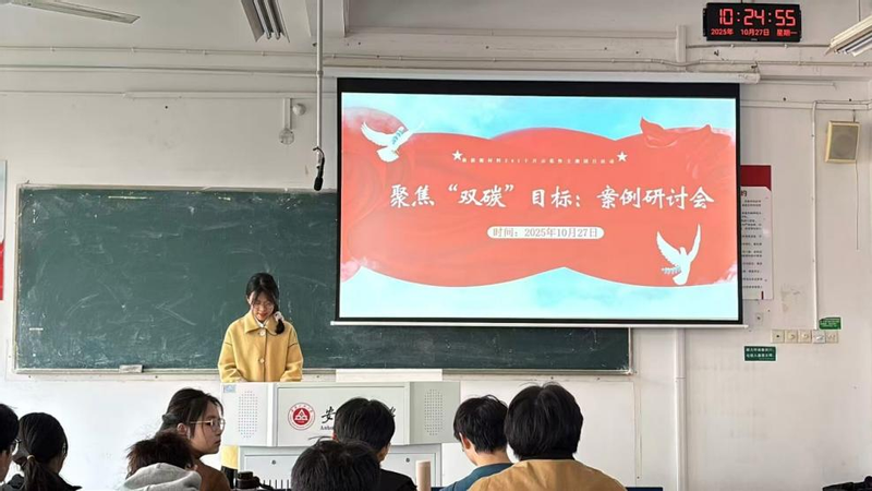 团支部书记付红艳作为主持人开篇点题,阐明本次活动核心目的:通过专业案例剖析,帮助同学们加深对国家“双碳”战略目标的理解:借助研讨交流互动,进一步强化班级向心力与集体凝聚力。