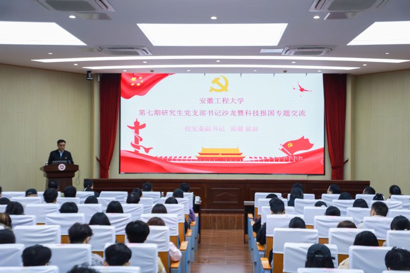 合肥工业大学仪器科学与光电工程学院副教授钱金贵受邀参会并做学术报告。钱金贵以“‘感’知世界,‘芯’系家国——MEMS传感技术的创新与报国之路”为题,从当代研究生的科研报国、MEMS传感器:国之命脉的“感知基石”、自身科研之路与心得体悟、携手同行,共赴星辰大海四个方面作专题报告。呼吁研究生在当今时代背景下,机械与汽车工程学院研究生第三党支部书记蔡劲草、生物与食品工程学院生物工程系教师党支部书记李艳宾、纺织服装学院研究生党支部书记裘秀群,分别结合工作实际进行经验交流分享。