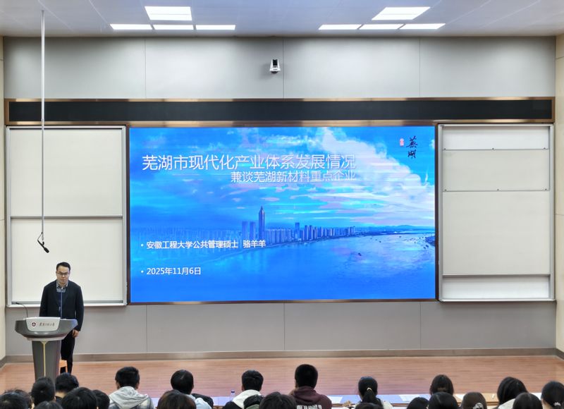 讲座开篇,骆羊羊立足国家现代化产业体系建设的总体部署,结合芜湖区域发展实际,系统阐释了该市现代化产业体系的构建逻辑与发展蓝图。他重点指出,当前芜湖正加速推动传统支柱产业向新兴产业迭代升级,已成功培育形成新能源汽车和智能网联汽车、航空航天(低空经济)、智能家电、文化旅游、新一代信息技术、大健康和绿色食品、新材料、人工智能和算力、新能源和节能环保等“九大新兴产业”集群,为城市高质量发展注入强劲动力。