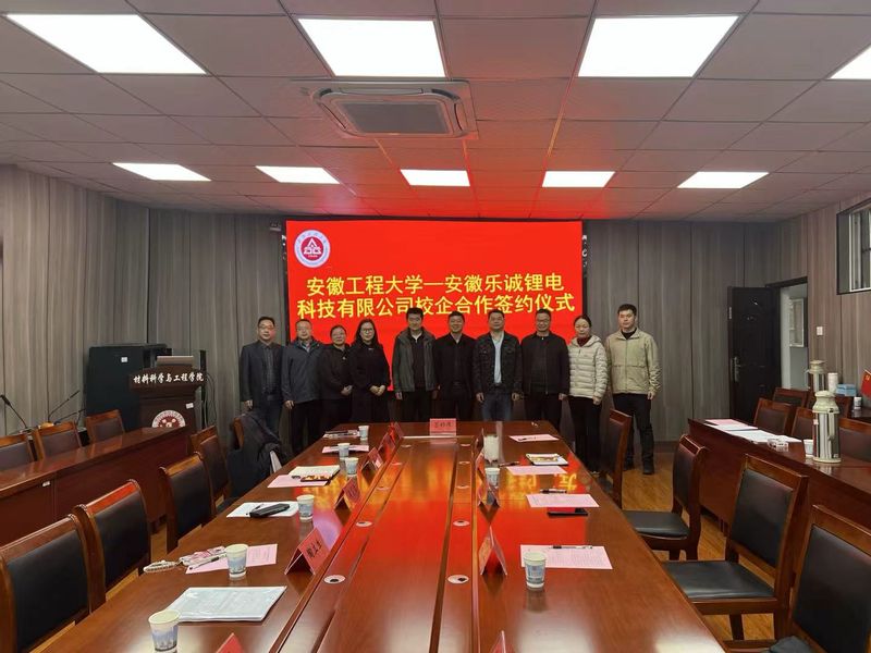 3月30日上午,老澳门六合彩资料-老澳门六合彩资料网站 与安徽乐诚锂电科技有限公司校企合作签约仪式在材料学院B216会议室举行。繁昌区工业和信息化局副局长梅嘉、安徽乐诚锂电科技有限公司总经理吴勇信一行,安徽工程大学科技处副处长王勇、老澳门六合彩资料 常务副院长王刚、副院长刘琪、副院长陶锋及教师代表出席签约仪式。仪式由王刚主持。